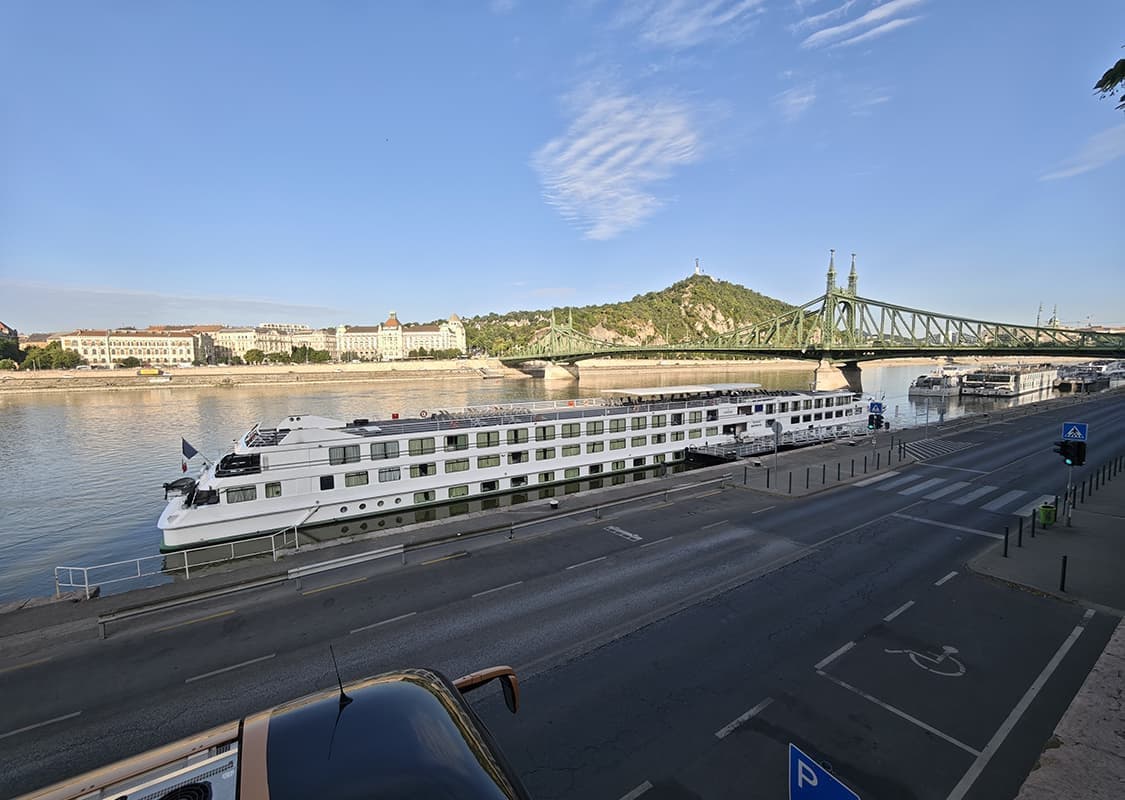 ブダペストには夜明け前に到着しました。ドナウ川クルーズのメインディスティネーションで、2日滞在します。停泊したのは自由橋に最も近い桟橋でした。