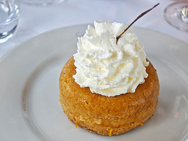 食事時、まずシェフがメニューを教えてくれます。毎回内容が違うので、紙にも書きません。そして、仕込みが終わっている料理の仕上げは、レストランの客席で繰り広げられます。