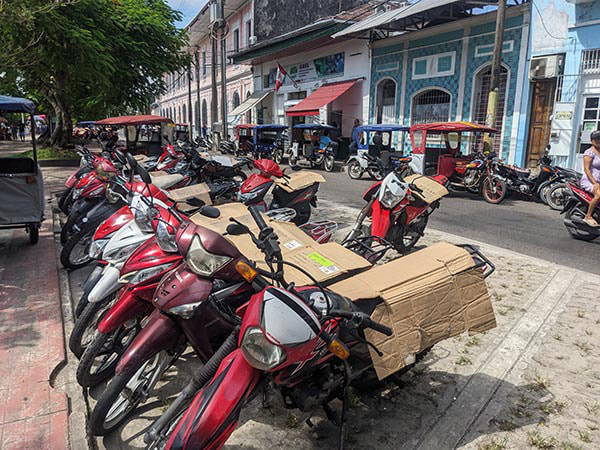 アマゾン最大の都市は、意外に東南アジアに似ています。それも10年くらい前の…。自動車も走っていますが、主な交通手段はトゥクトゥクです。今どきタイでも観光用以外でトゥクトゥクは走ってないでしょうが、そこにカラフルなスペイン風の建物。ノスタルジックで個性的な街ではあります。特に目的もなく歩き回っていました。