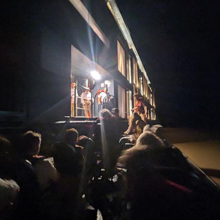空は真っ暗なのですが、時折、遠くで雷がなっています。後から聞いてみると、この辺では、夜によく雨が降るそうです。