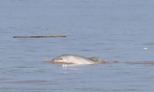 淡水イルカが近づいてくる。