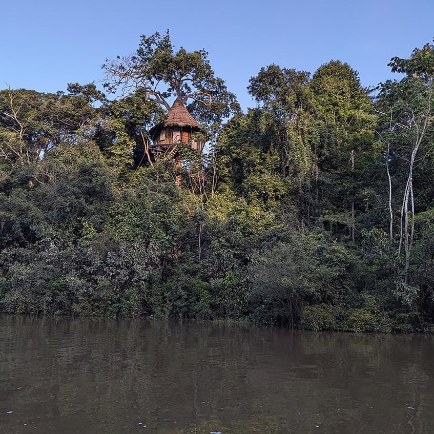どうやって行くのかわかりませんが、アマゾンの支流には多数のリゾート施設がありました。トムソーヤの冒険のハックの家のようなツリーハウスや拭き屋根だけど近代的に見えるホテルとか…