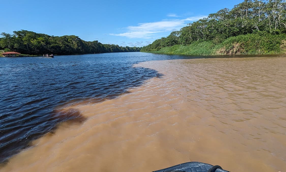 アマゾンには多くの支流が注ぎ込みます。そんな川の合流点には多くの淡水イルカが生息しています。水の透明度が低いアマゾンのイルカはほとんど目が見えないそうです。その分耳が発達していて音波で周りが理解できるとのことでした。見ものはピンクイルカです。これは主食のプランクトンの色が身体に移ったのだそうです。そういえばフラミンゴもそうでした。