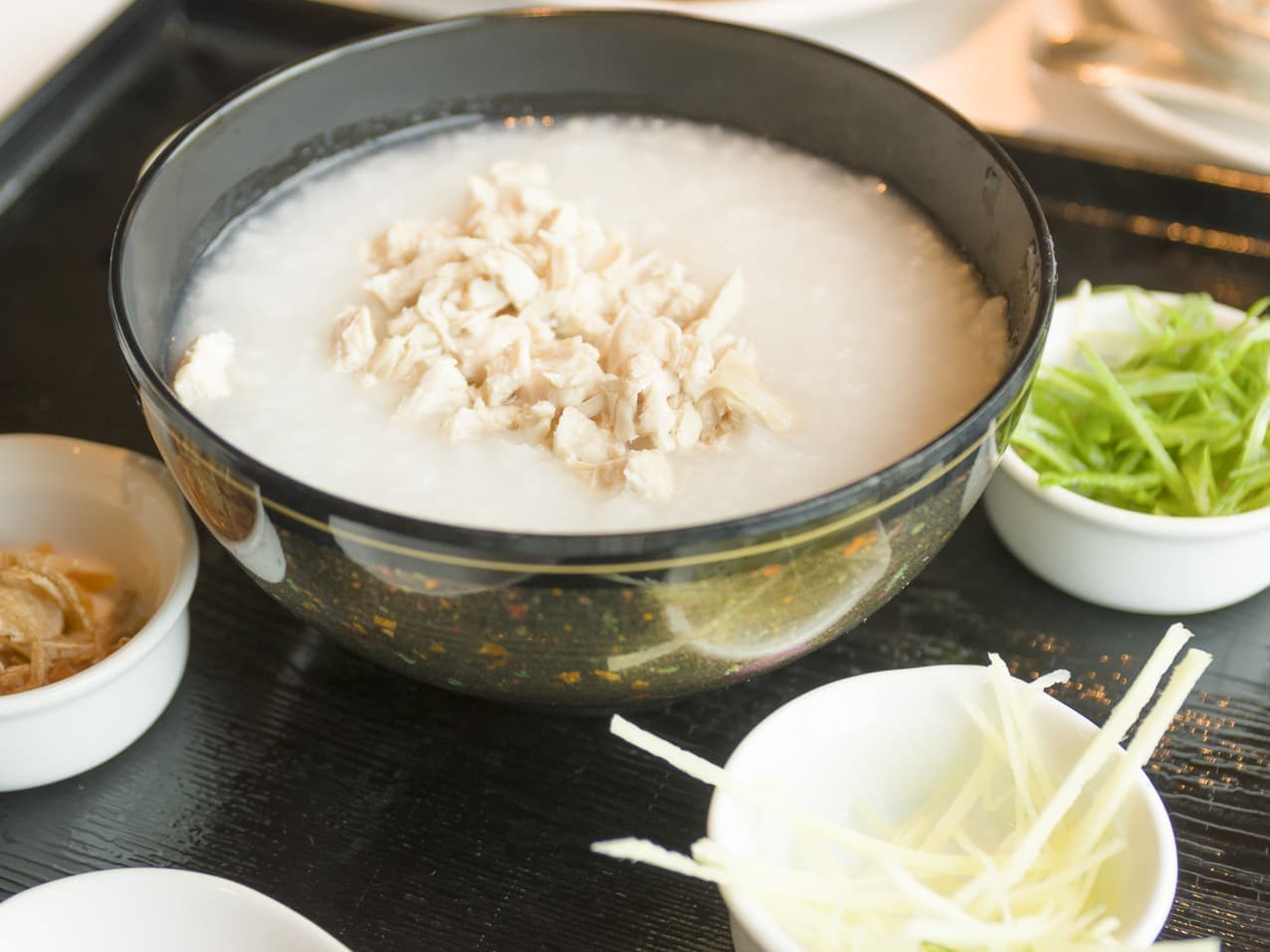 鶏肉の中華粥、味は後から加えます