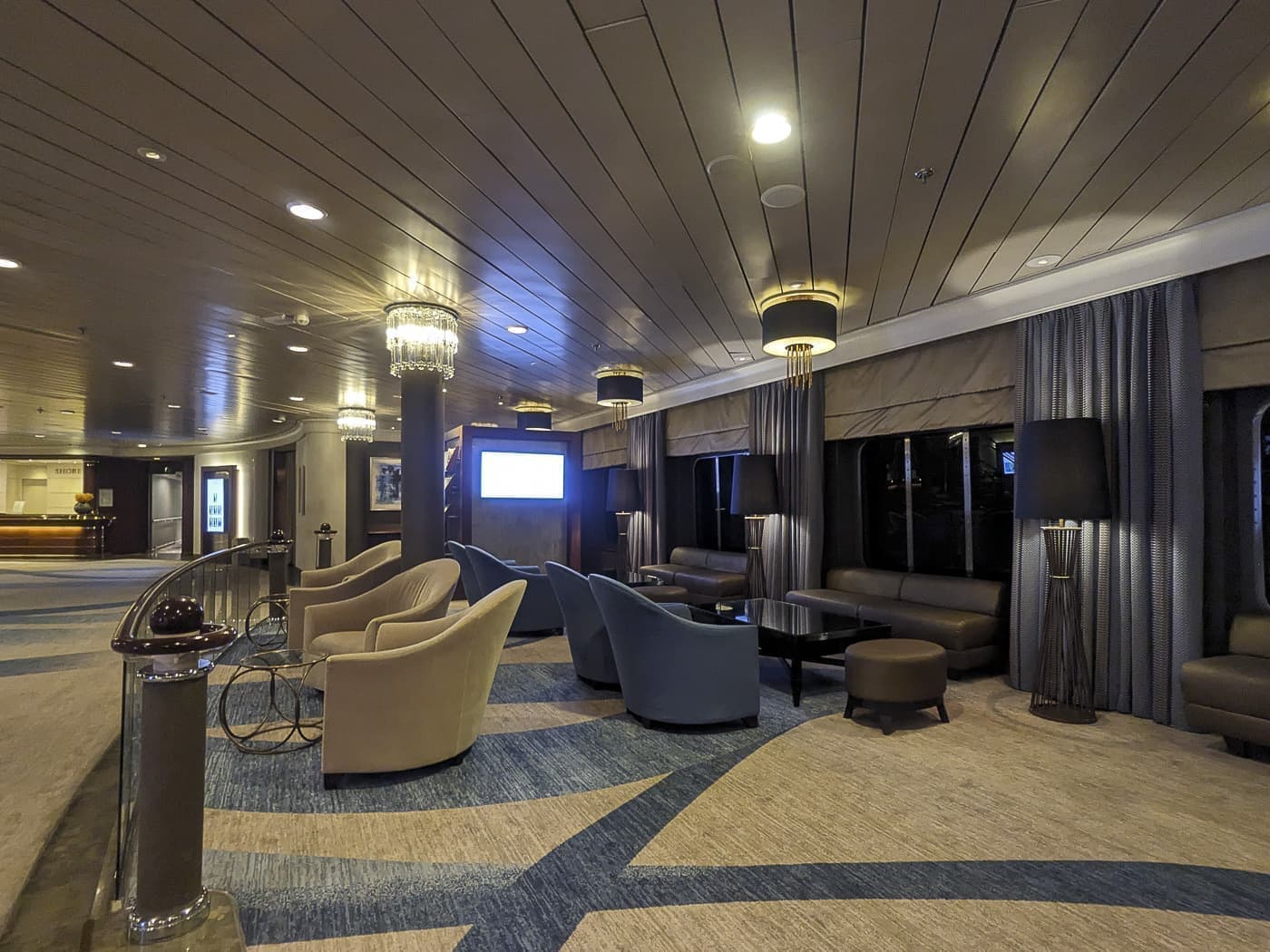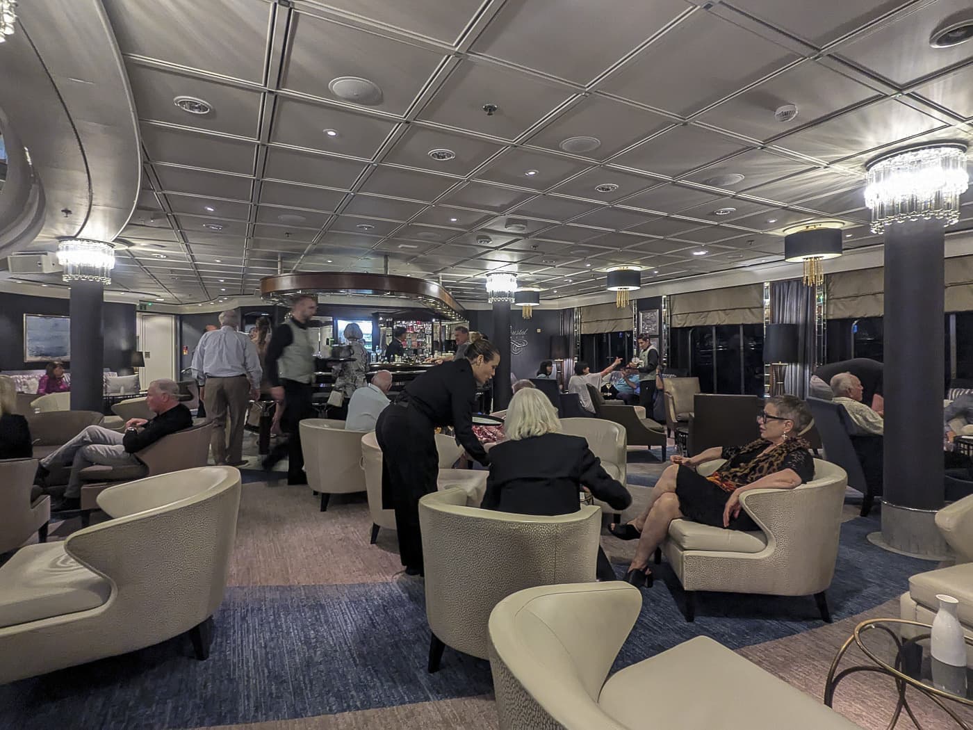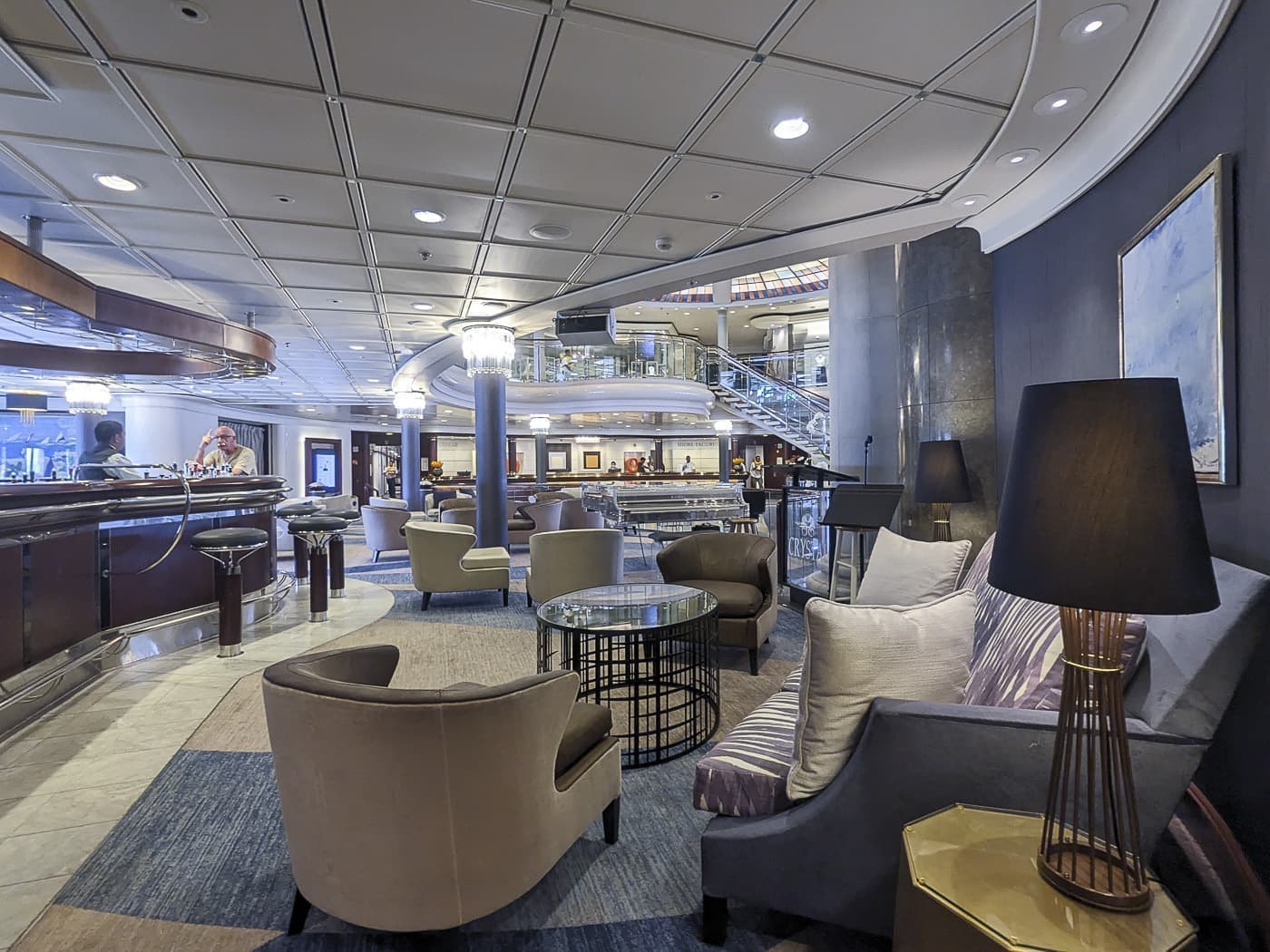 また、ディナーの後になんとなく寄ってしまうバー、クリスタル・コーブもこのフロアです。夜は、ピアノか招聘ミュージシャンのヴァイオリンなどがいつも流れてるのもこの場所ですから乗客が集まるところです。