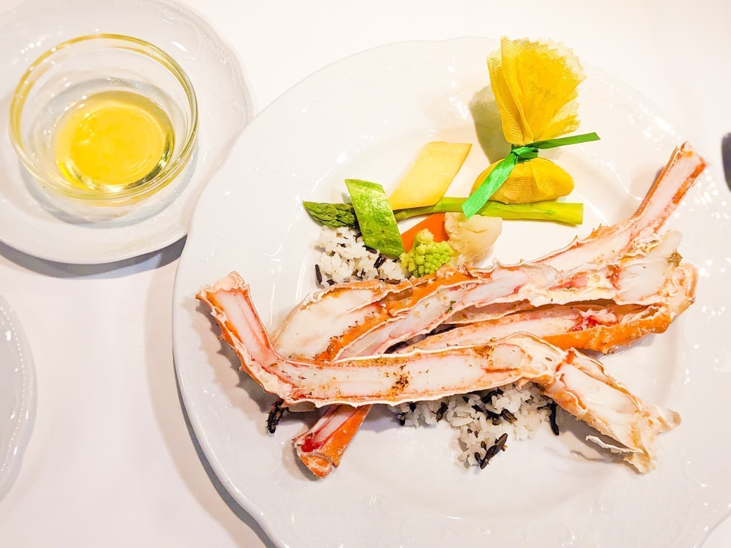 ガラディナーの一品、たっぷりのタラバガニ
