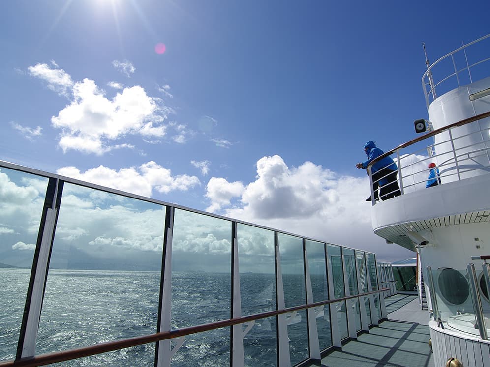 船の揺れと出会った人と、お祝いのワインに少しだけ酔った夜です。