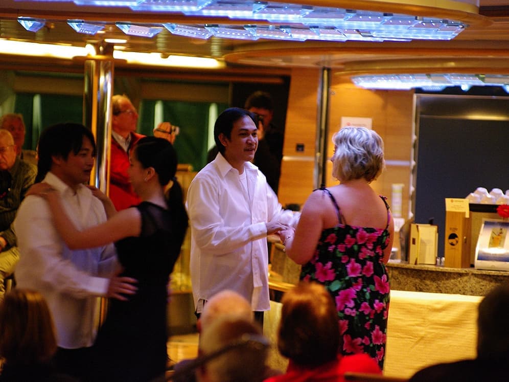 船長のお別れの挨拶と、このクルーズのベストサービス賞のクルーズを表彰。手作りの出し物。スタッフ全員で、歌ってお別れ。そんなに上手くない合唱なんだけど、なんか泣けます。