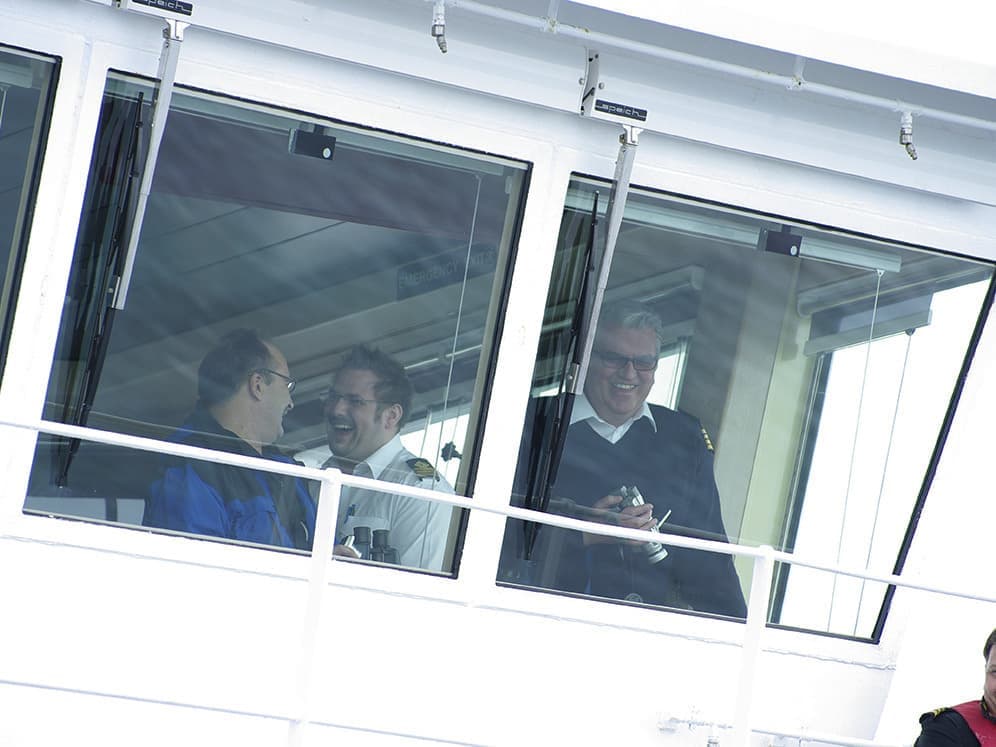 いずれにしても船長のハンセンさん、すごいです。ブリッジを振り返ると、操舵室もテンションが上っているのが見えます。
