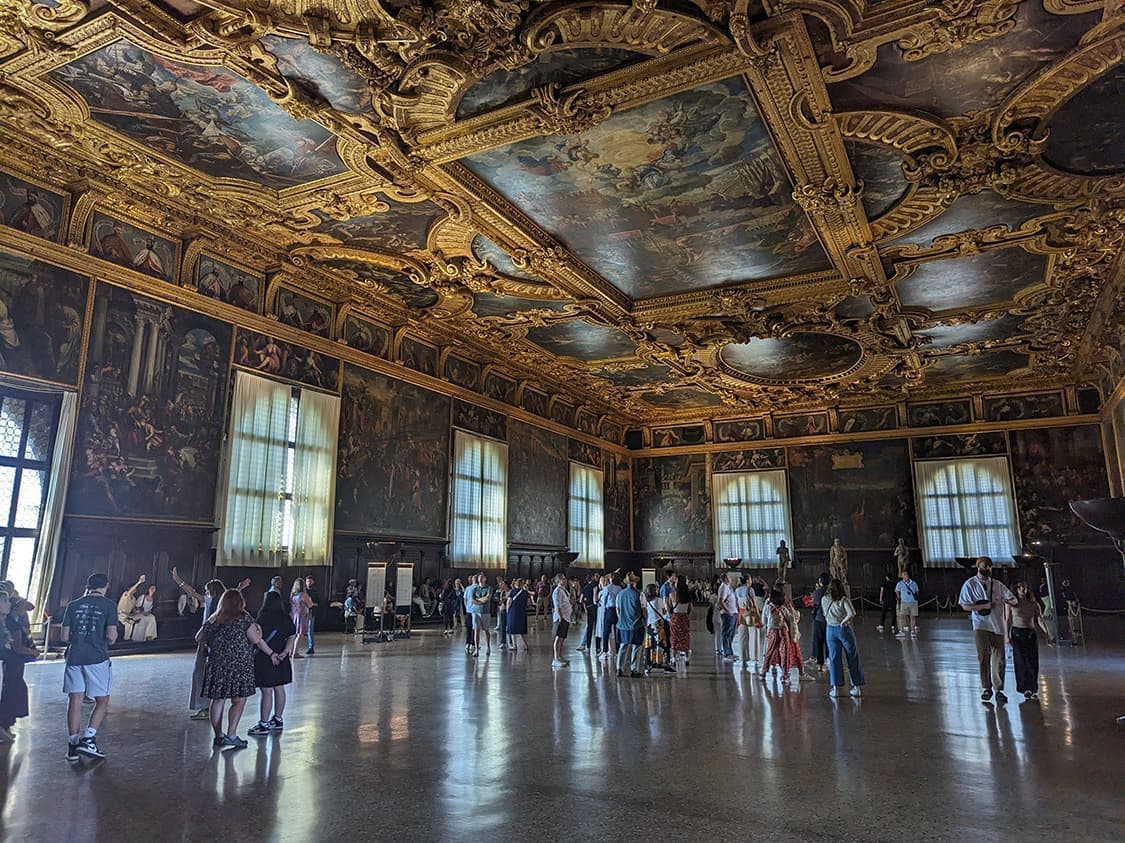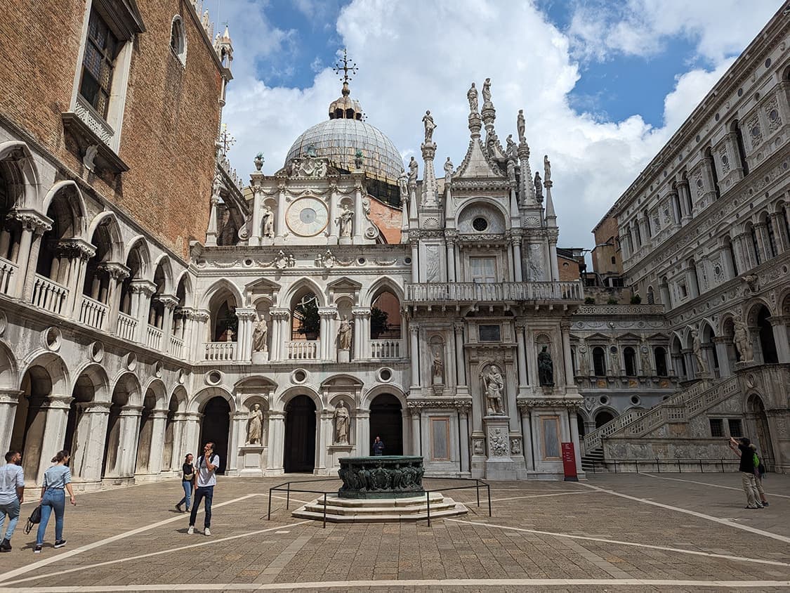 クルーズ2日目は早朝からドゥカーレ宮殿に向かいます。観光客が押し寄せる時間帯を避けて開場直後の時間を目指します。カナルグランデに沿った広々としたプロムナードをサンマルコ広場までゆっくりと歩くのですが、朝のまだ観光客が少ない時間の体験は発見が山ほどあります。