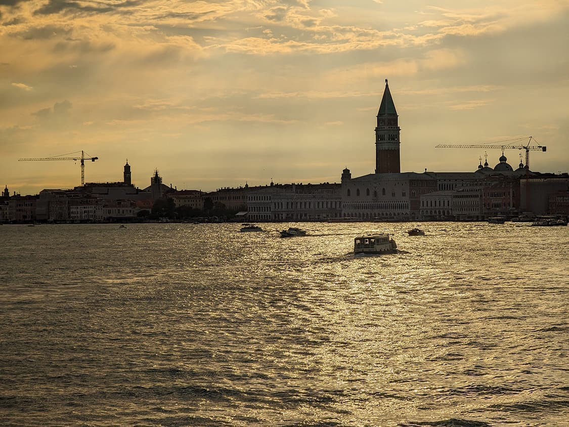 夕方、ディナーの少し前に戻りましたが、ここから見るベネツィアのシルエットは素晴らしいです。難解な現代アートで頭が混乱していたのが癒されます。