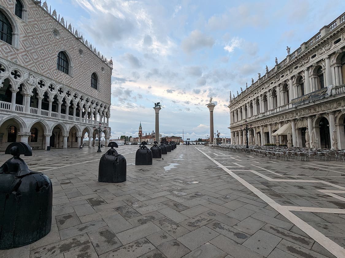 周辺を回ってサンマルコ広場に戻ると朝日が広場の露を乾かしはじめていました。