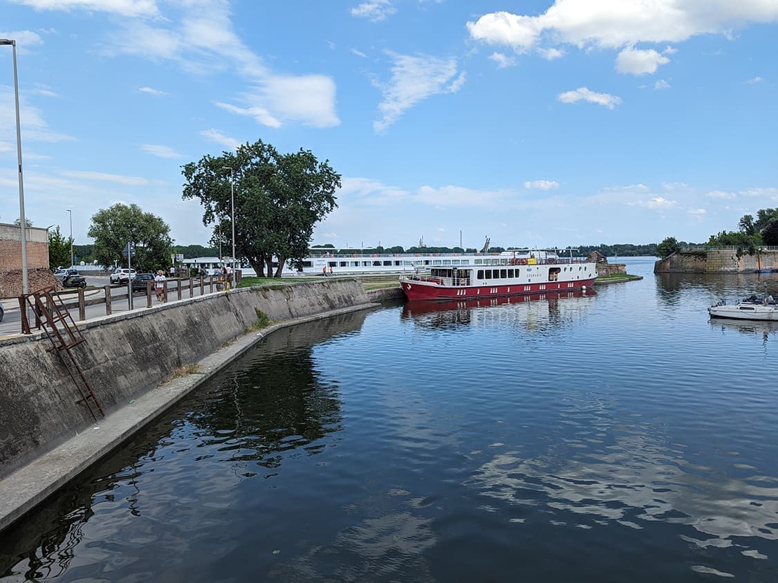 昼近くにはマントヴァに迫り、ポー川の本流からマントヴァへの運河に入りました。運河を経てスペリオーレ湖畔のマントヴァの港に着いたのは午後4時半でした。