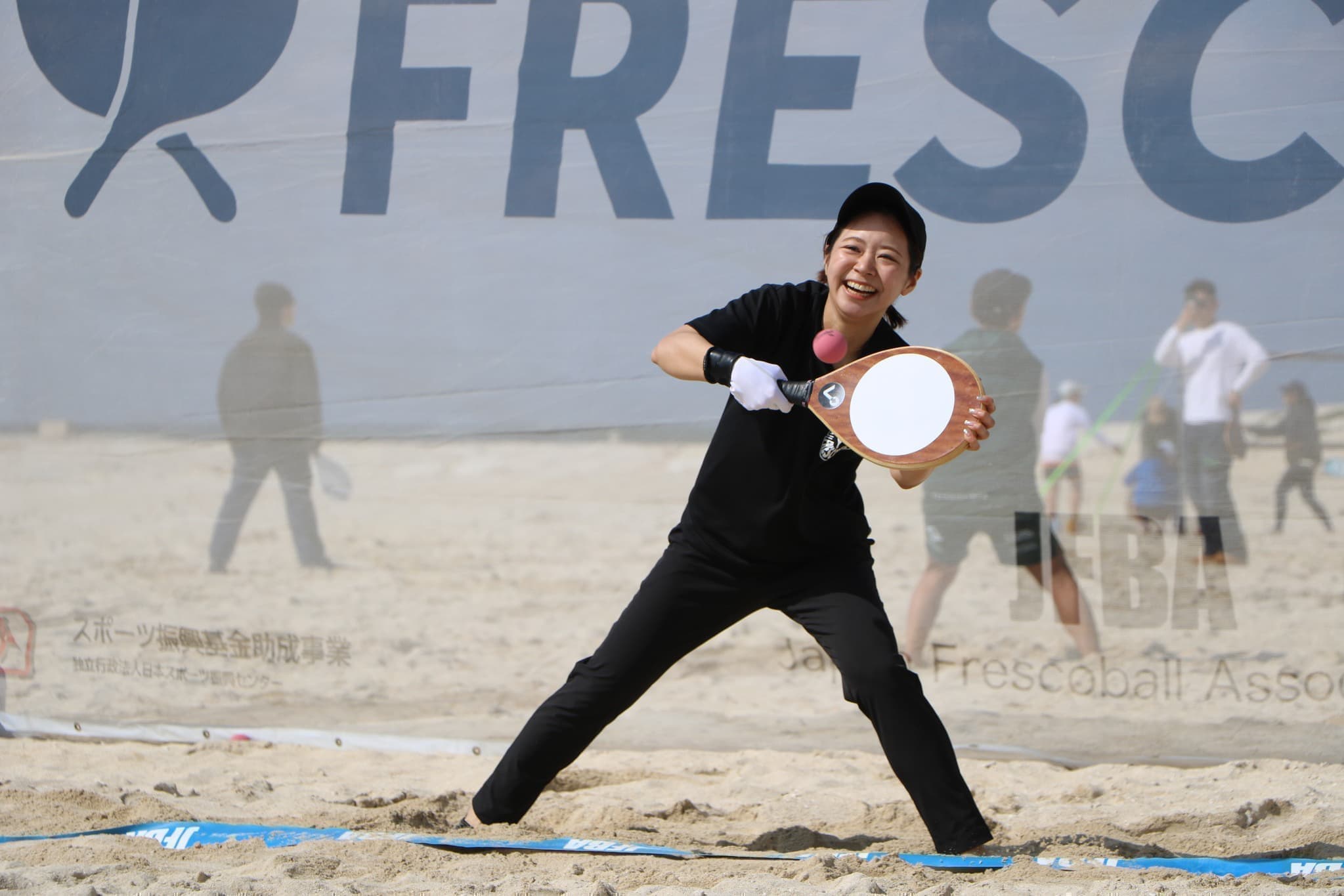 1945年にブラジルで生まれたフレスコボールは、ラケットでボールを打ち合うスポーツです。その最大の特徴は、向かい合う選手が敵ではなく、味方なところ。5分間の間ラリーを続けますが、「相手の打ち返しやすいところに打つ」という点が「思いやりのスポーツ」と呼ばれる所以です。