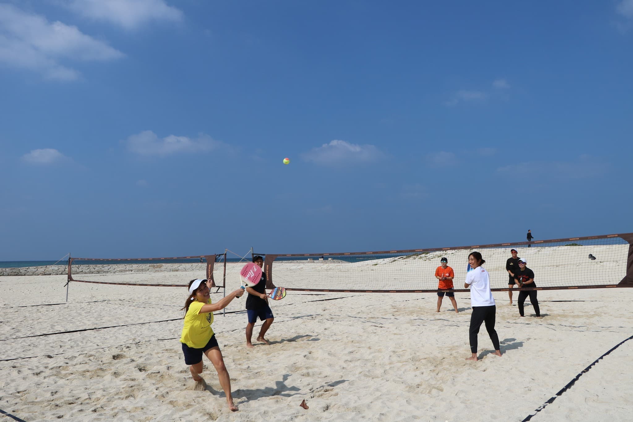 今回実施したビーチスポーツは3つ。「フレスコボール」「ビーチテニス」「ビーチモルック」です。