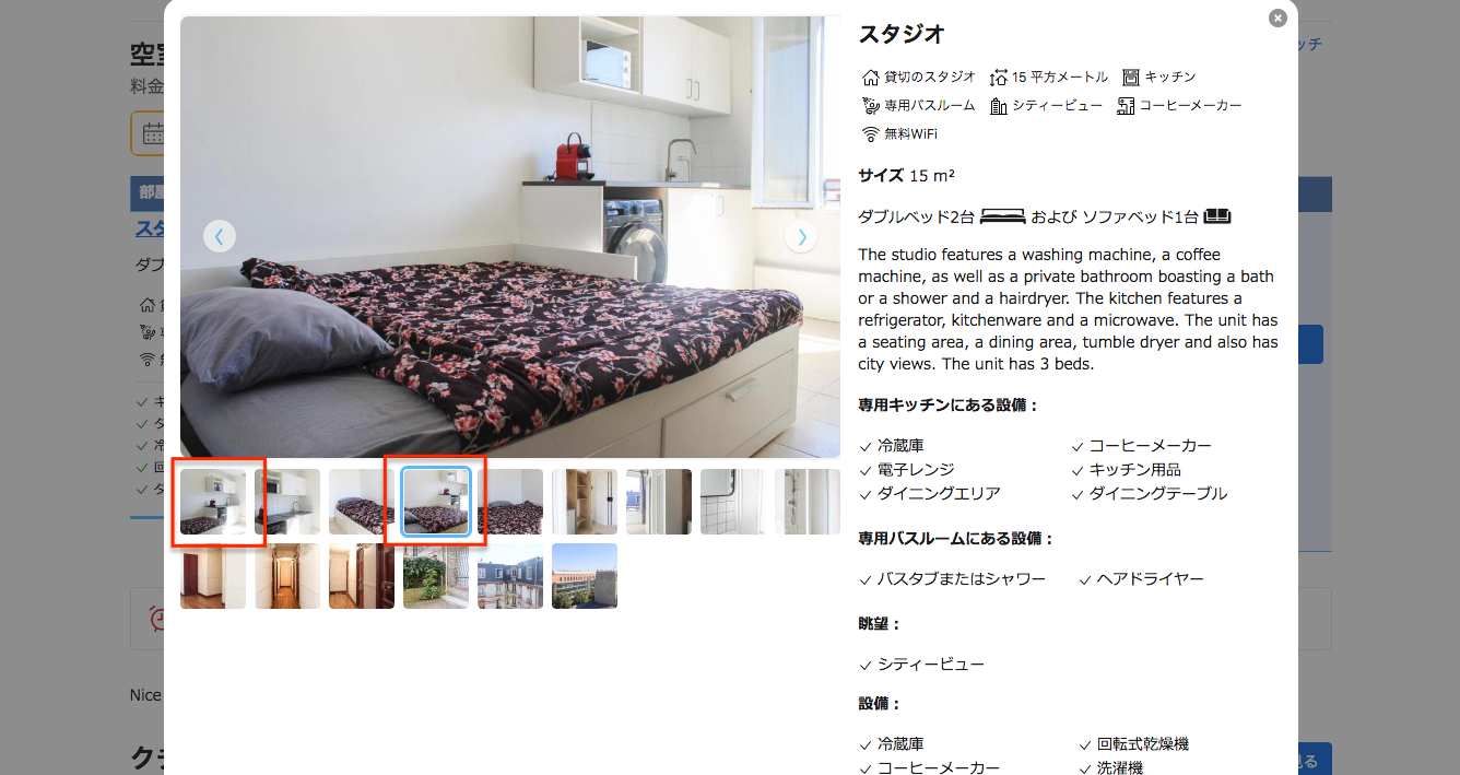 予約サイトでは専有面積と写真は丁寧にチェックする
